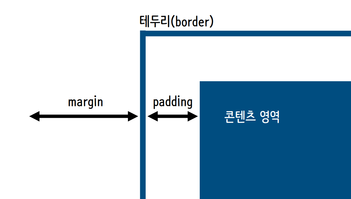 • 콘텐츠 영역, 안쪽 여백, 경계선, 바깥쪽 여백.