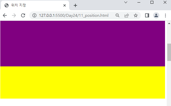 보라색 공간이 스티키 요소이며, 노란색 공간에 적용되어있는 상태이다.